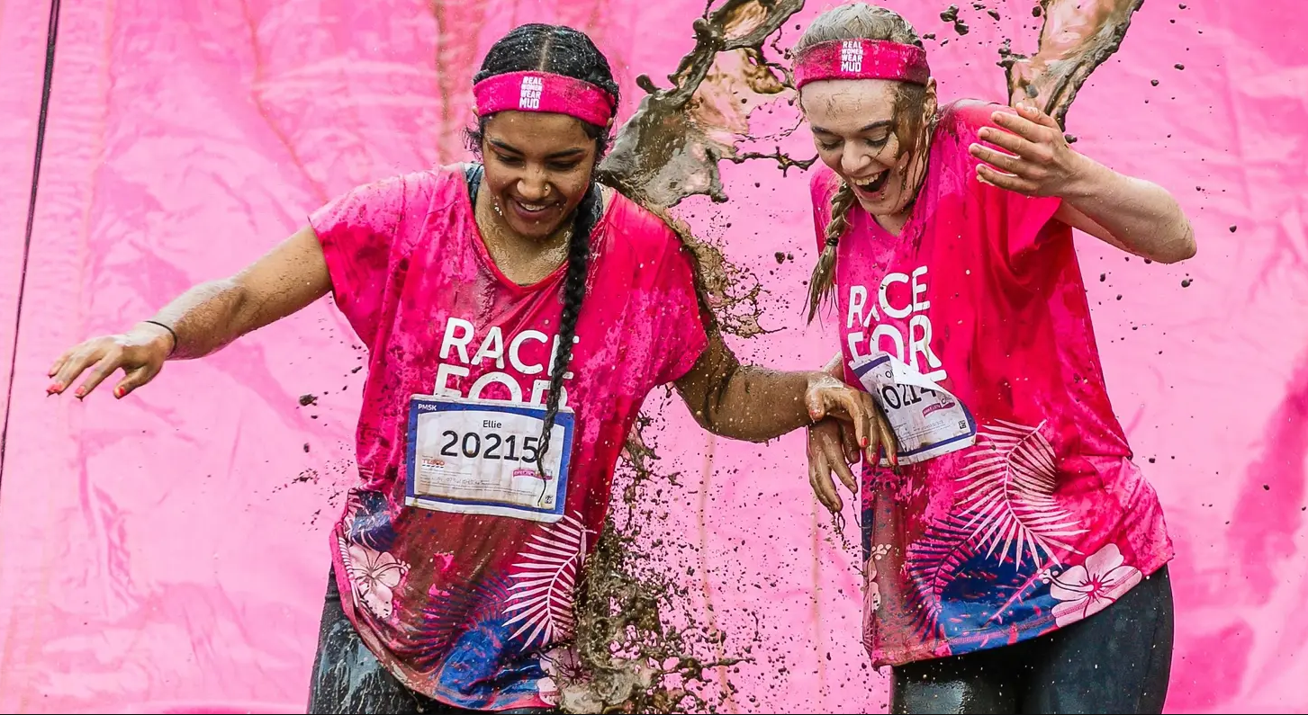 A Cancer Research UK event featuring a muddy obstacle course to raise funds for cancer research.
